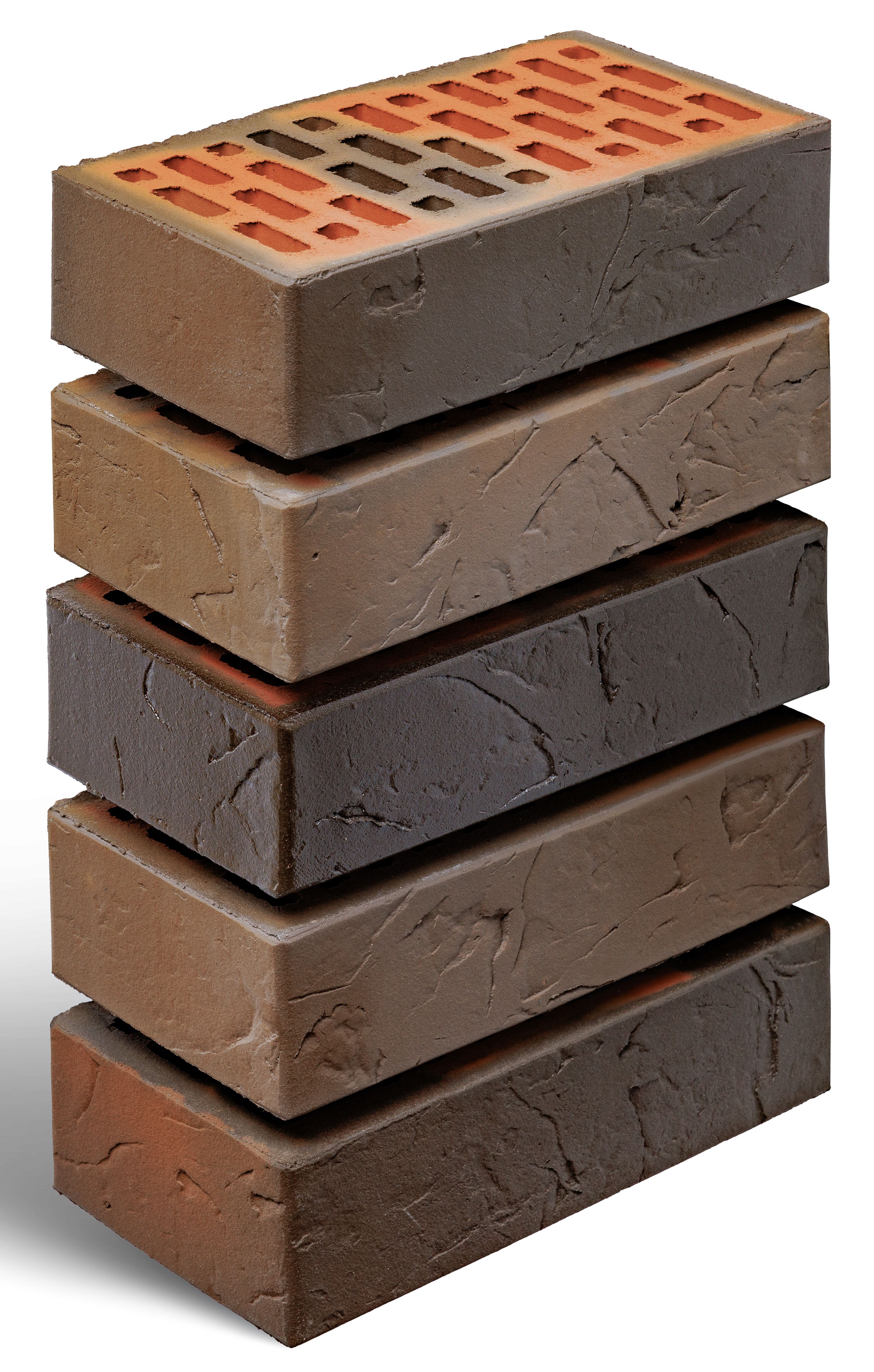 Кирпич облицовочный одинарный ФЛЭШ СЛАНЕЦ ТЕМНЫЙ 1НФ пустотелый